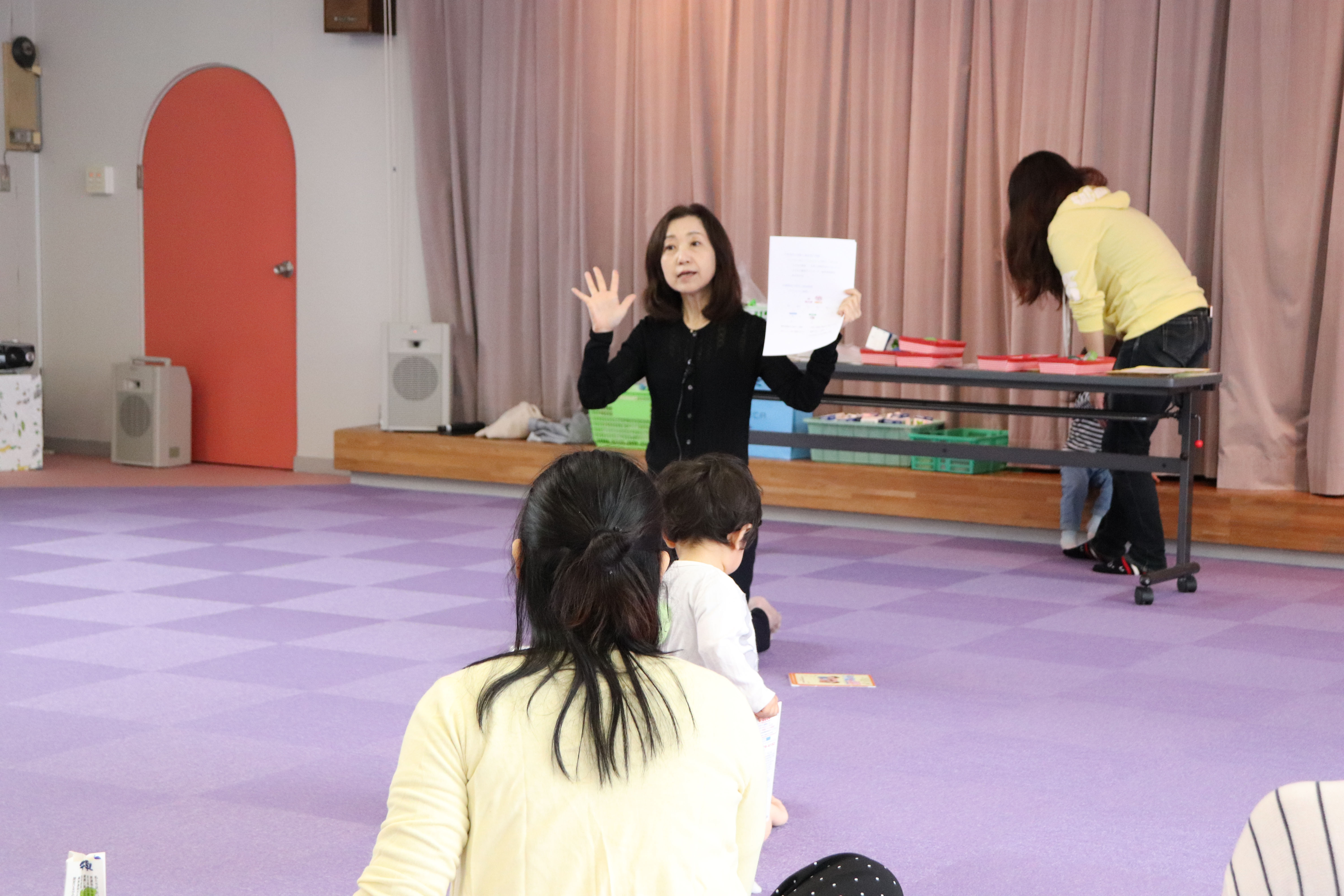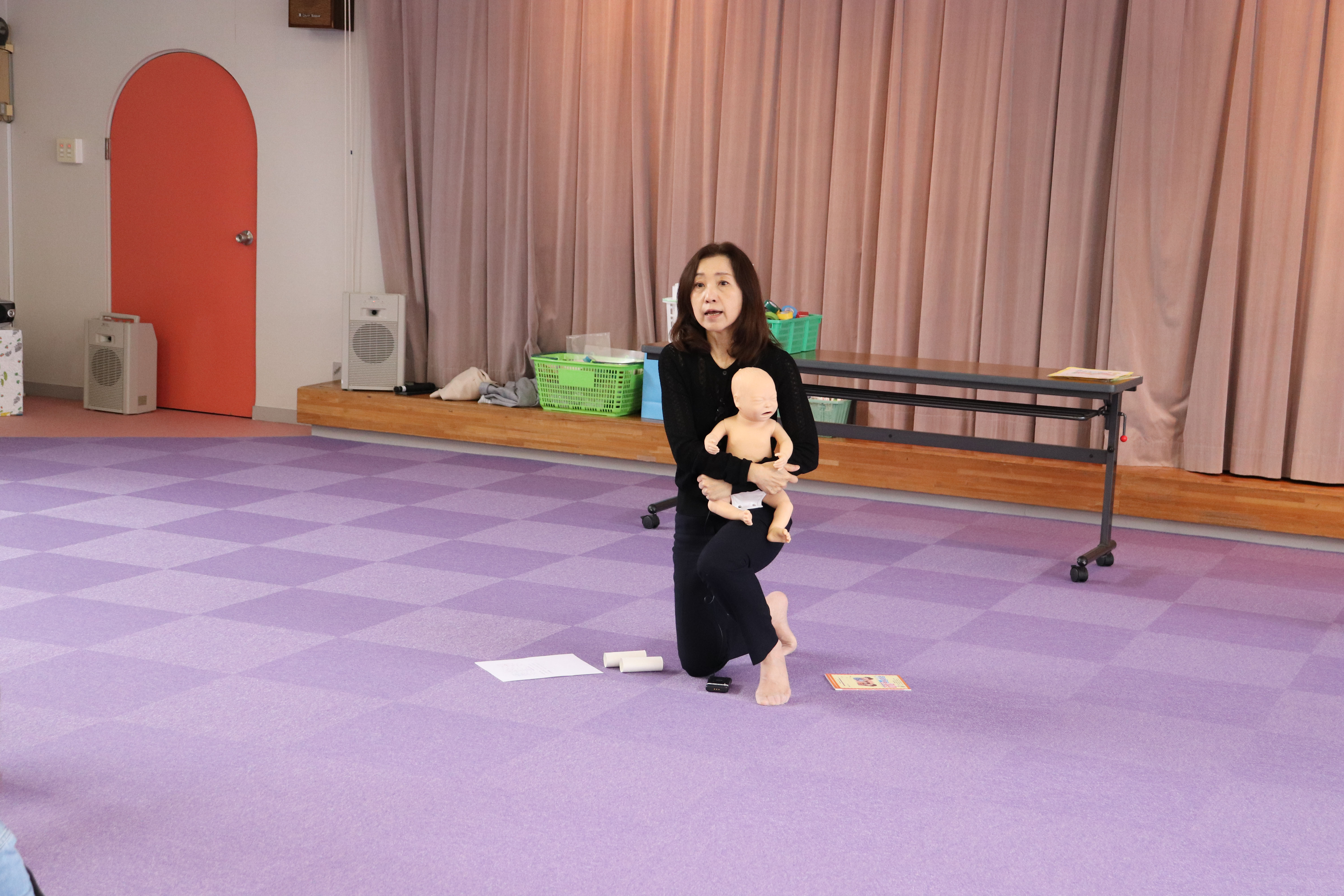 0〜3歳児に対する感染症の予防や、誤飲・誤嚥の対処について講演し、およそ20組の親子さんに参加いただきました。