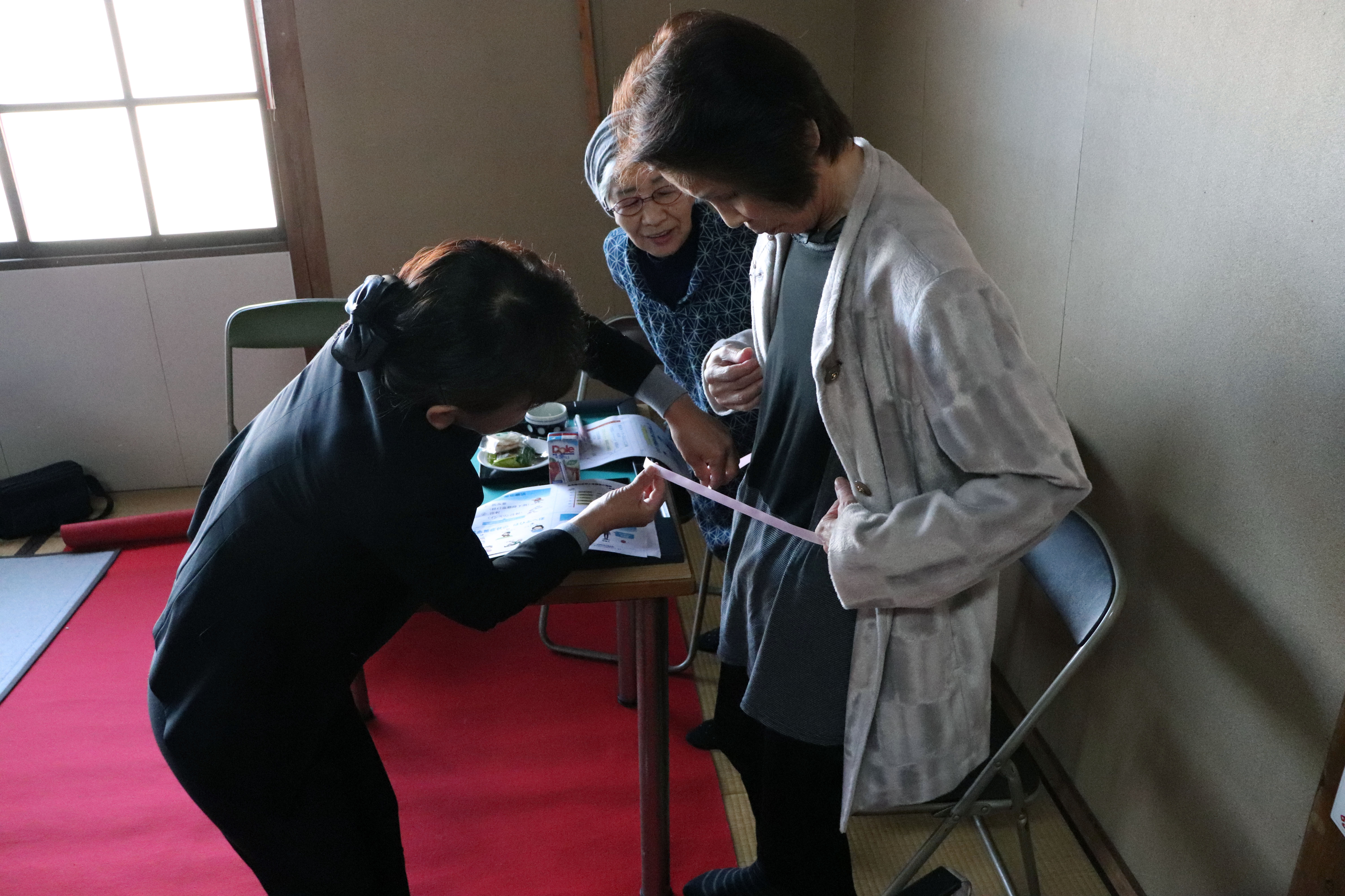 今回は、普段の食事に含まれる塩分量についてや、正しいインスリンの注射の仕方などについて、1時間程度講義をしました。講義の最後には、参加者の皆さまに自身のウエストについて話をし、実際にウエストを図るなど、熱心に聞いていただきました。