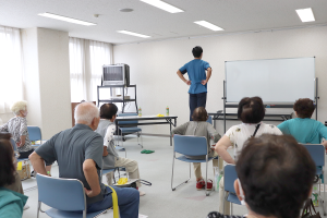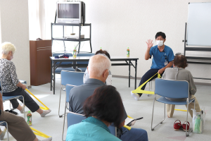 2025年度1回目のまつなみ健康塾は笠松町「ふれあい喫茶松枝地域」へ出張し、理学療法士による無理しない毎日できる運動の実践に関する講演を行いました。