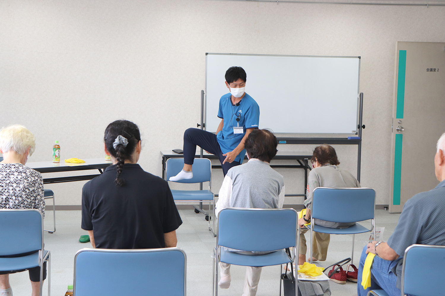 2024年度5回目のまつなみ健康塾は「南及福祉会」へ出張し、理学療法士による座ってできる転倒防止運動に関する実技講演を行いました。