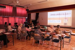 2024年度2回目のまつなみ健康塾は笠松町の「かさほサロン」へ出張し、介護福祉士と社会福祉士による認知症についてと介護を受ける立場になった場合の社会資源についての講演を行いました。認知症の特徴や予防対策、介護の支援サポートなどご紹介しました。