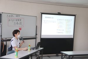 「糖尿病とは」と題して、そもそも糖尿病はどういう病気なのか、どういう生活をしていると患ってしまうのか、そして糖尿病と大きく関わりがあるBMI(肥満指数)などについて講演しました。
