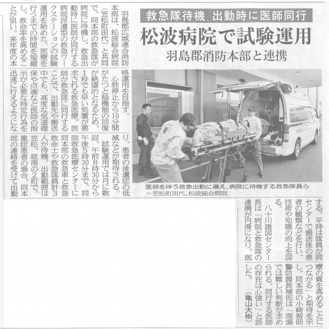 平成29年11月7日(火)岐阜新聞に「救急ワークステーション」について 掲載されました。