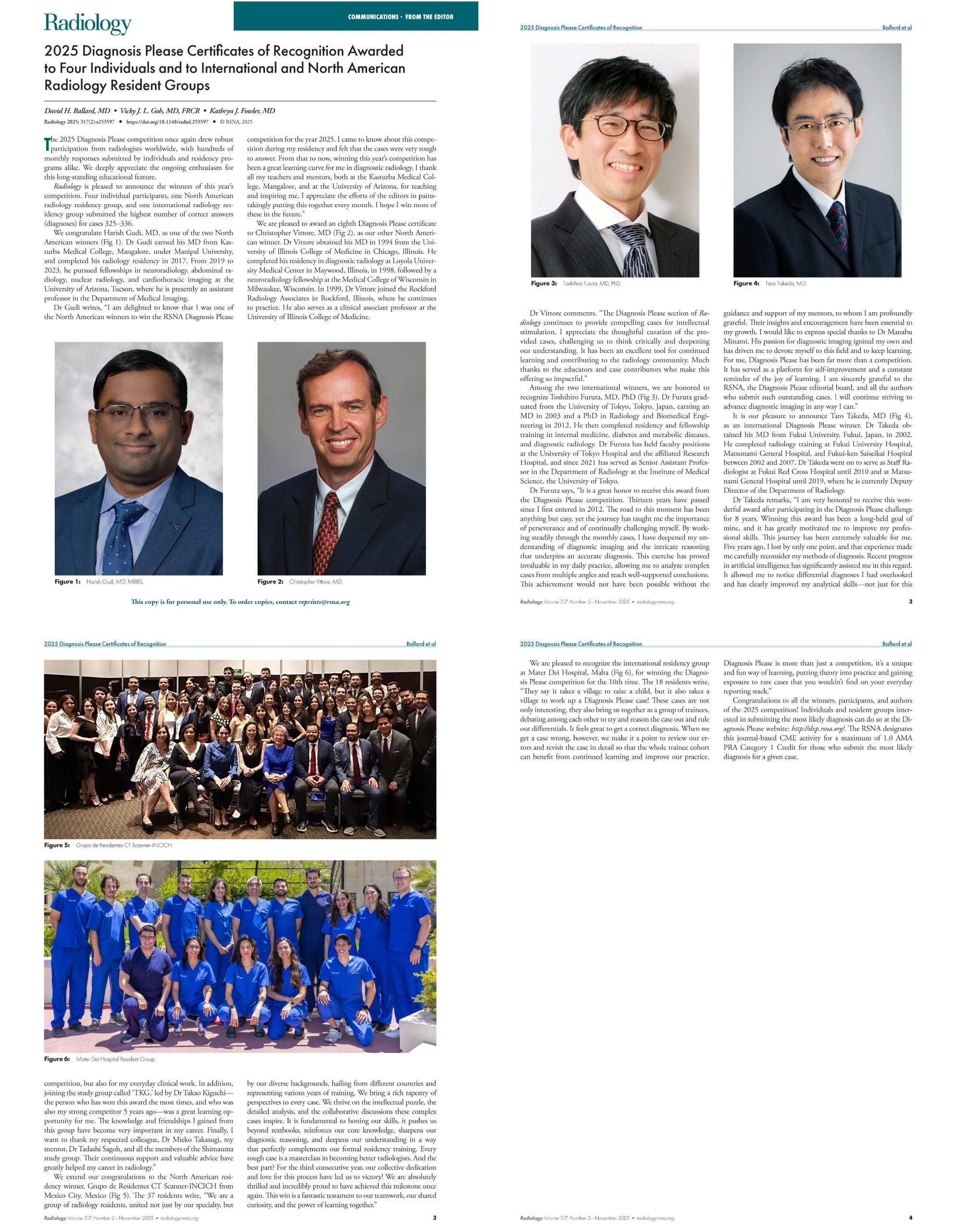 「Diagnosis Please」は1998年から続く歴史あるコンテストです。世界中の放射線科医が毎月出題される難解な症例の読影に挑戦し、その診断精度を競います。年間を通じて最も優れた成績を収めた医師のみが世界チャンピオンとして表彰されるため、受賞は極めて名誉なこととされています。